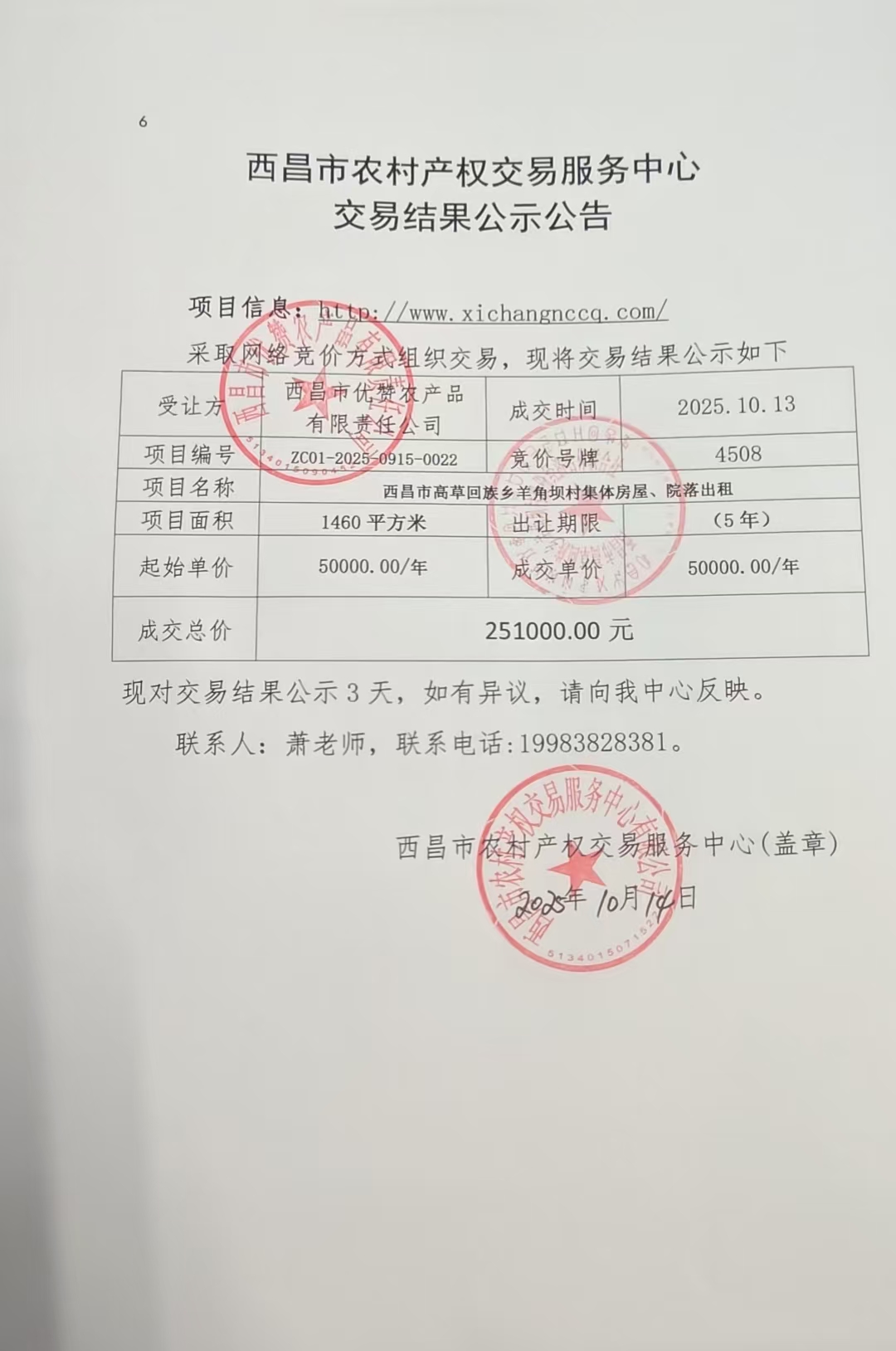 查询网址:www.xichangnccq.com(西昌市农村产权交易中心)