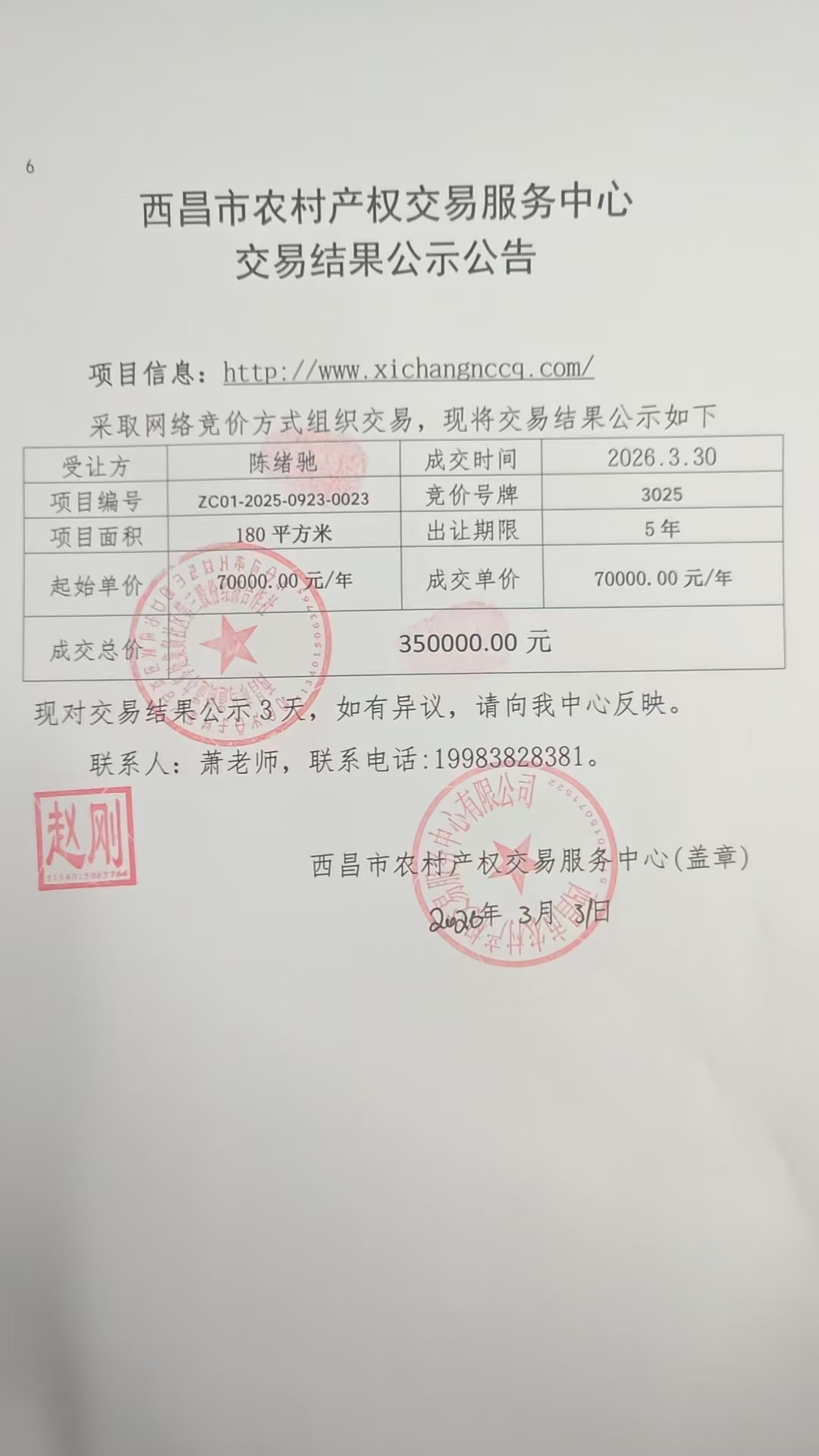 | 联系人 | 西昌市农村产权交易服务中心 | 电话 | 0834-2197657 |